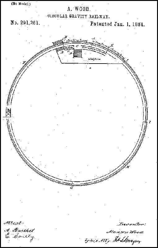 | A. Wood, Circular Gravity Railway (U.S. Patent 291,261; January 1, 1884) |