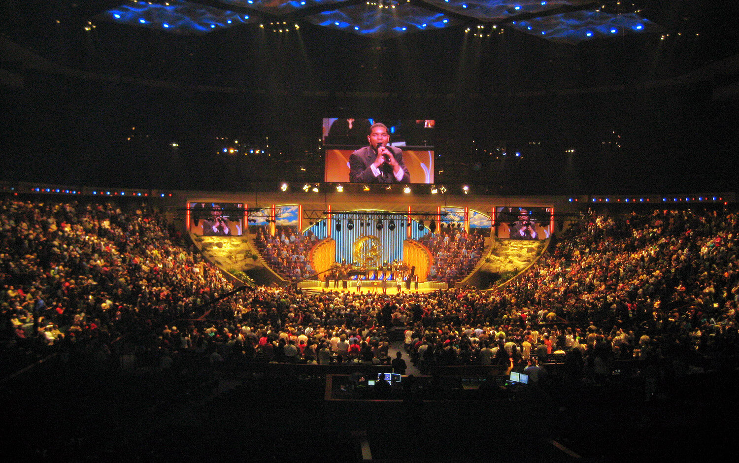 Megachurch worship, Lakewood Church, Houston, Texas, January 12, 2008. Photograph by Flickr user aJ Gazmen. Creative Commons license CC BY-NC-ND 2.0.Recommended Resources