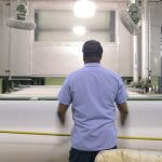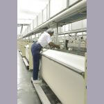 Opened in 1968, the Katherine plant was the last of four Springs cotton mills operating in Chester, South Carolina. Hughes and Hall captured these images shortly before the plant was scheduled to close in February 2007 and transfer its weaving operations to Brazil. Although the highly mechanized factory required few workers, the Katherine Plant’s closing marked the end of an era for this Carolina Piedmont town, with its history of textile manufacturing. The slides and video footage presented here offer a rare glimpse of the manufacturing sequence which occupied the lives of hundreds of thousands of southern workers over several generations.