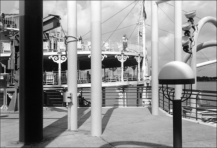 In the parts of these cities that attracted tourists the physical (visible) space seemed less complicated. These were places consciously designed to appeal to people unfamiliar with the city. Accumulated layers of the past seemed stripped away in favor of making these spaces comprehensible to visitors who didn't know much about them. These were cityscapes I photographed as populated by strangers who are there only temporarily ("just passing through") but are nonetheless in the process of forging a relationship, even if only for purposes of entertainment, between themselves and the world most immediately around them.