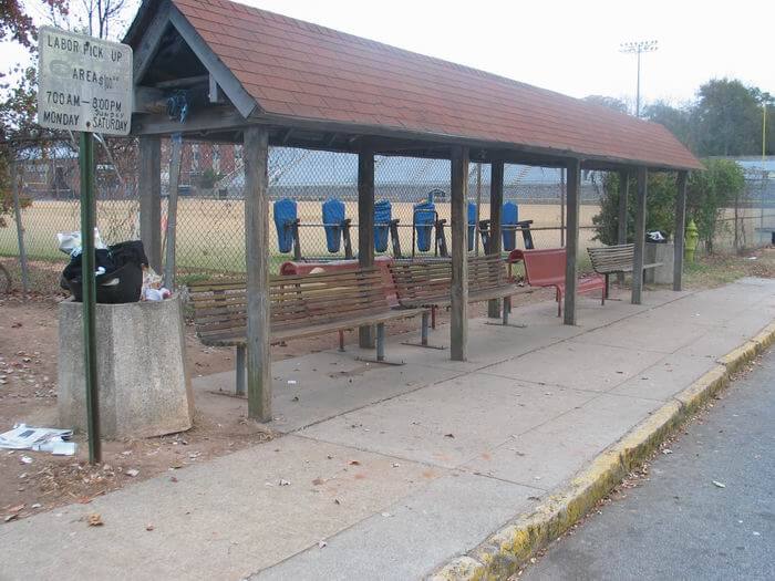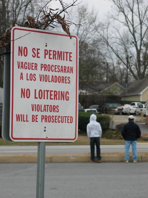 At catch-out corners, some nearby business owners and residents viewed day laborers with suspicion, scorn, and fear. As a result, some city councils and county commissions passed ordinances designed to forbid day laborers from congregating in designated areas. A different tack was taken in other locations. In Duluth, the police issued identification cards for day laborers who lived within the city limits, and imposed a fine on “outsiders” who traveled there to wait for work. In Decatur, the city constructed a covered bench that provided a modicum of comfort for day laborers.