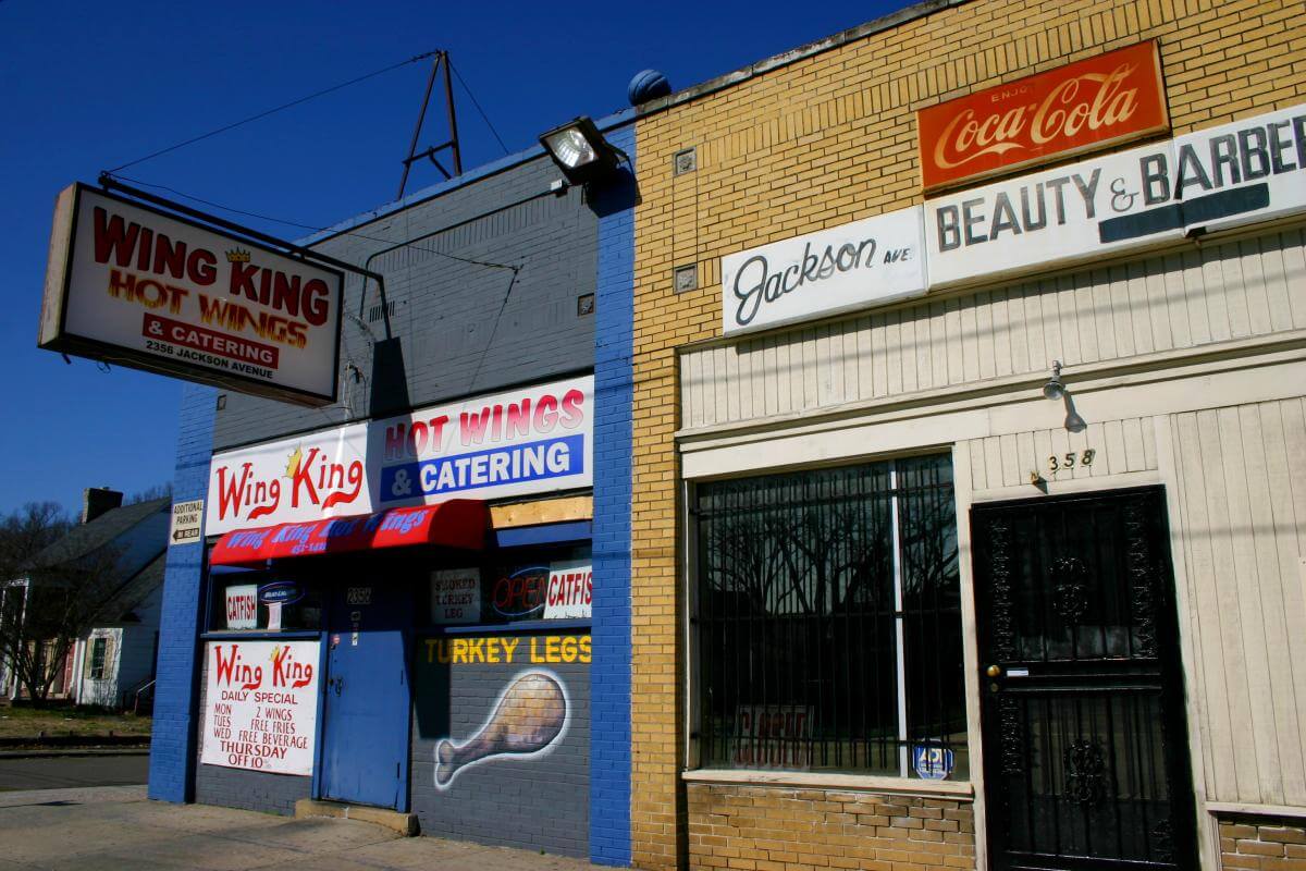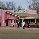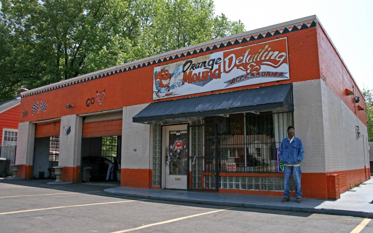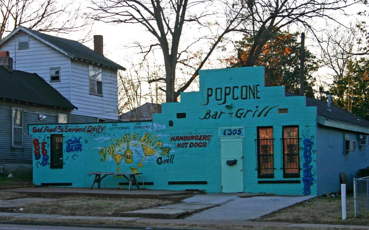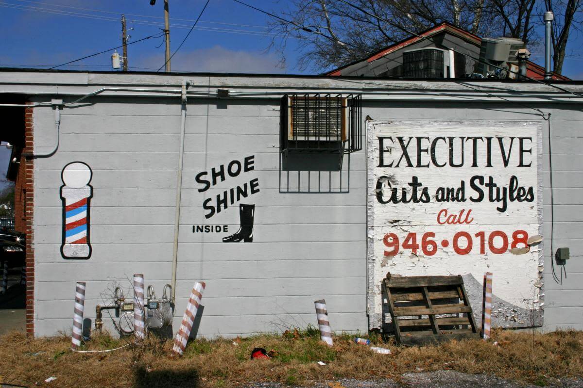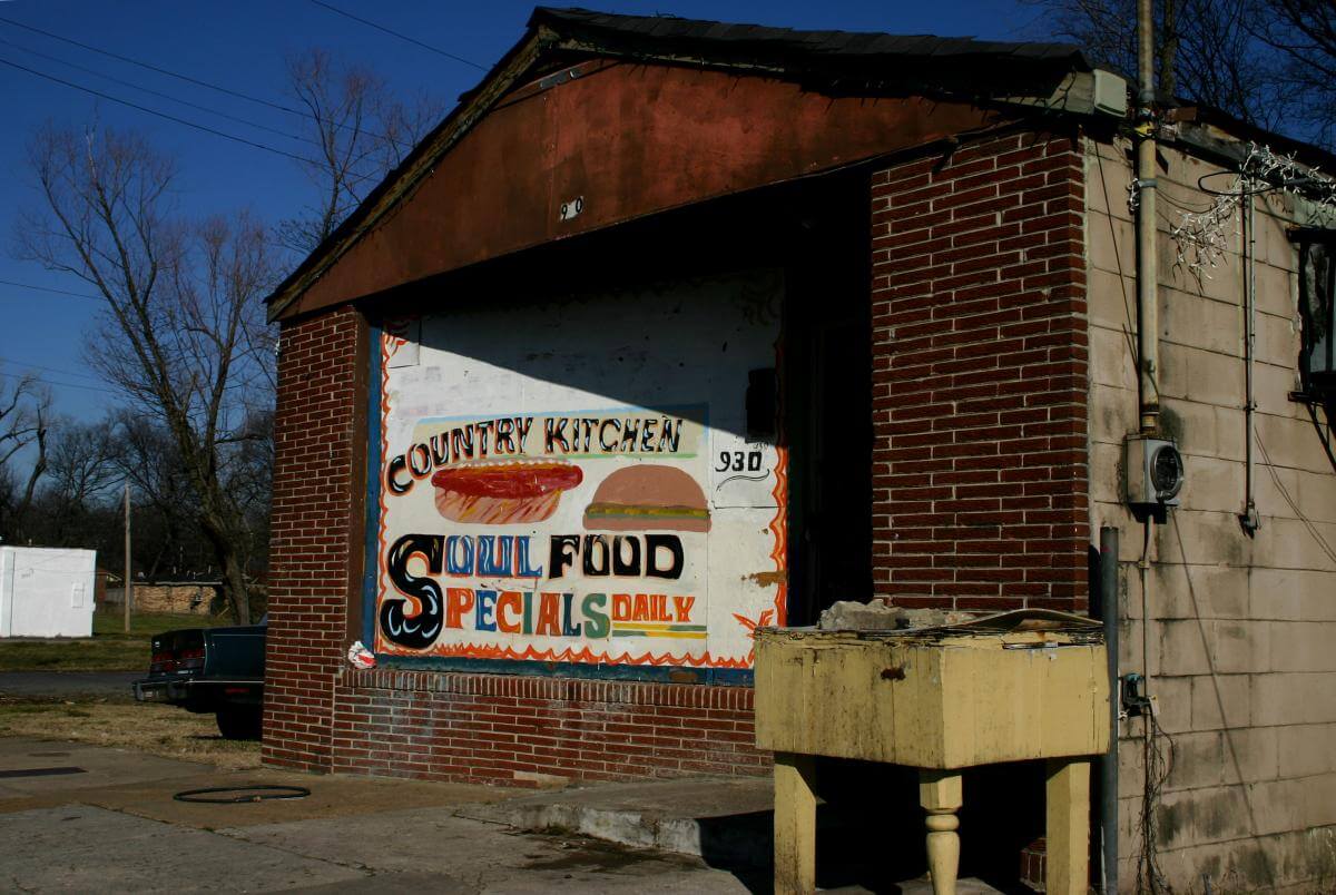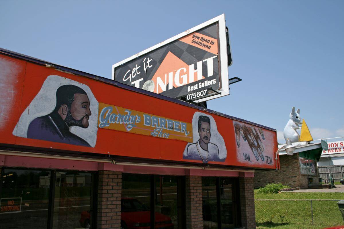 While I didn't seek out hand-painted signs, I noticed their emergence as a pattern in my photo travelogue of Memphis shortly after I moved here in 2004. I felt drawn to their imperfect beauty. In a city of much poverty, racism, and crime, the sheer volume of these colorful hand-painted signs speaks of persistent creativity and the spirit of small business. The sheer volume of these signs in the city affirms the popularity of this mode of expression and suggests that small businesses continue to function as cultural landmarks at the center of neighborhood geography, despite the encroachments of corporate chains and developer-planned communities. Owners often collaborate with local artists, as in the case of the mural at Hawk's Bar & Grill, painted by James "Brick" Brigance. A native of Orange Mound, Brigance adorned many neighborhood buildings with hand-stenciled and freehand advertising for local businesses. Such work suggests that small-business advertising can be a collective endeavor, relying on neighborhood talent and artistic vision.