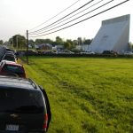 | Cars lined up on US Route 11, waiting to enter. Family Drive-In, Stephens City, VA, 2008. |