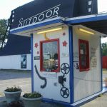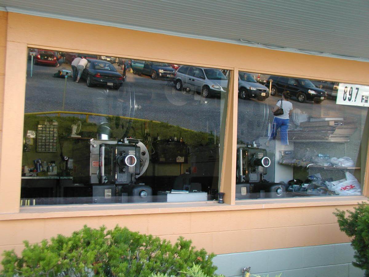 Most drive-in theaters pay significant fees — up to eighty to ninety percent of the box office take — to screen films. Concession sales and auxiliary business ventures are vital in keeping the gates open and screens lit. Like many other drive-in theaters, the Starlite hosted a Saturday flea market. In addition, as the Walther, Colt, and Ruger window decals on the projection booth testify, late proprietor Robert "Bob" Groves opened a gun shop and video club shortly after he acquired the theater in 1987.29Anne Krishnan, "Movies Under the Stars; Starlite Drive-In remains Durham institution," Herald-Sun [Durham, NC], 10 July 2004, A1.