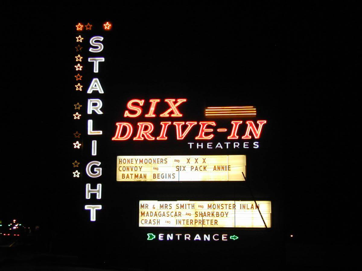 Rising gasoline prices and the growing home video industry pushed the Starlight, and many other drive-ins, into desperate times in the 1970s and 1980s. X-rated films and a weekend flea market helped keep the gates open. The Starlight Six owes its rejuvenation to an unusual collaboration in the late 1990s between corporate ownership and local drive-in fans. Over 75 percent of drive-ins are individually-owned small businesses.41Robin T. Reid, "The Drive-In Theater Turns 75," Smithsonian.com, 28 May 2008 The Starlight Six is owned and operated by the De Anza Land and Leisure Corporation, a family-run business that once owned over forty drive-ins across the country, and which now operates seven drive-ins in California, Arizona, Utah, and Georgia.42"South Bay Drive-In," Cinema Treasures, http://cinematreasures.org/theater/15105/; Evelyn Barge, "Big picture, bright lights: Illuminating the area's most colorful silver screens," San Gabriel Valley Tribune, 23 May 2008, ; and Jay Allen Sanford, "Drive-In Theaters in San Diego: Complete Illustrated History 1947 thru 2008," San Diego Weekly Reader, 1 August 2008, online version, http://www.sandiegoreader.com/weblogs/bands/2008/aug/01/drive-in-theaters-in-san-diego-complete-illustrate/. When Atlanta's only other active drive-in, the North 85 Twin, closed in 1998 to make way for a multiplex, nostalgia over its loss combined with the "retro" revival to renew interest in the Starlight Six.43Henry, "Drive-In Revival"; Joey Ledford, "Lane Ranger; Twin's dark screens dim colorful past," Atlanta Journal and Constitution, 12 June 1998, C2; and Craig Schneider, "One last flick draws thousands; North 85's final screening has deep impact on nostalgic baby boomers," Atlanta Journal and Constitution, 15 June 1998, C1. In 1999, a conversation between local surf-rock guitarist Scott Rogers and the Starlight Six's Teri Oldknow led to a three-day festival of bands, muscle cars, overnight camping, and B-movies.