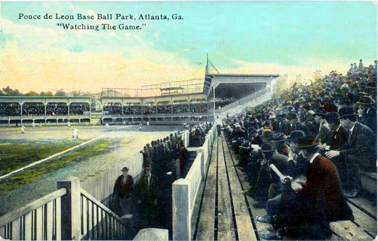 | "Watching the Game" Ponce de Leon Ball Park postcard, circa 1915 |