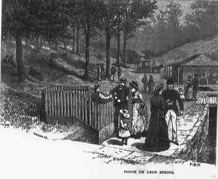 In the late 1860s, Atlanta residents began visiting the springs in John Armistead's beech grove two miles east of town. With the filling-in of Yancey Springs to make way for the Air-Line Railroad in 1868, Atlantans looked to Armistead's springs to supplement their residential water supply. A retired Atlanta physician, Dr. Henry L. Wilson, named the spot "Ponce de Leon Springs" based on his assertion that the water held rejuvenative properties. To meet rising demand, Armistead set up a residential water delivery service in late 1871. By the spring of the following year, an omnibus carried passengers daily from Atlanta to Armistead's springs.