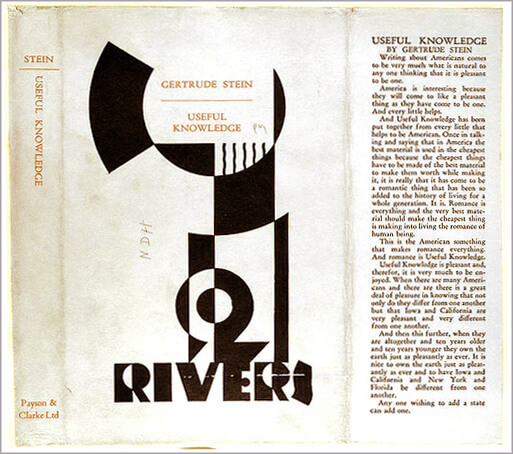 From the 1928 hardcover edition dust jacket of Gertrude Stein's Useful Knowledge:
