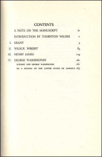 Contents page from Stein's Four in America, 1947