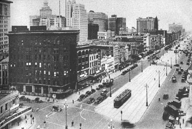 | Canal Street, Separating the Old from the New City, from the WPA Guide to New Orleans. |