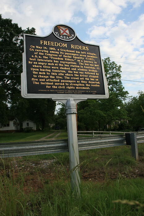 | Freedom Riders historical marker outside of Anniston, Alabama, 2009. |