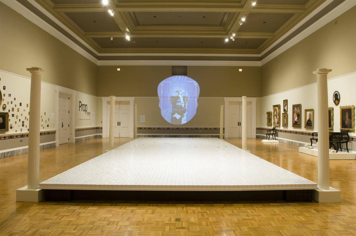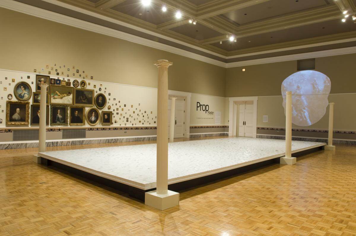 Artists Susan Harbage Page and Juan Logan designed Prop Master: An Installation specifically for the Main Gallery of the Gibbes Museum of Art. In its totality, Prop Master constitutes what Logan and Page call "a disruption from within." As the person who acquires and manufactures props for theatrical and film productions, the prop master is responsible for all aspects of their use on a set. Prop Master compares the prop master and the museum, as well as a production and an exhibition, to explore how the elements of an art collection are social props and the art museum a prop master. This installation investigates the role of the Gibbes Museum as prop master and prop with regard to Charleston's social relations.