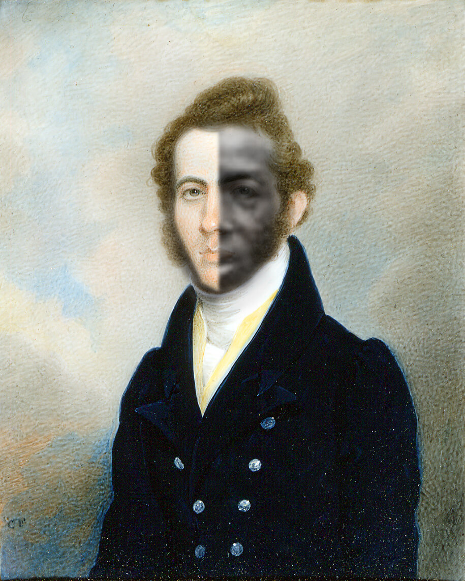 For Sexually Ambiguous, Page and Logan selected large portraits and miniatures from the collection of the Gibbes Museum of Art to illuminate race and gender relations. They chose the portraits based upon the appearance of the individuals rather than for the identity of those pictured. These portraits suggest a social caste as a whole. The miniatures include paintings of men, women, and landscapes that were digitally altered to reimagine their content/s and draw attention to their function as a mode of self-presentation.