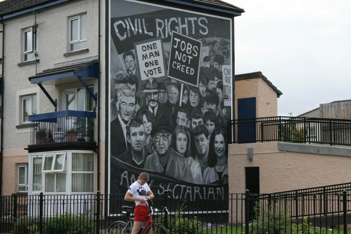 While de jure segregation in the United States ended in the 1960s and South African apartheid in 1994, Northern Ireland's 1998 peace is fraught with problems. Political interaction remains content/ious. A visit to the Museum of Free Derry revealed an awareness of the Northern Ireland struggle as part of a worldwide freedom movement, as seen in its membership in the International Coalition of Sites of Conscience. Eamon McCann, a former civil rights activist and still a labor organizer, said "the museum tells the story of the Northern Irish Troubles from the perspective of the people in the community and in the context of the wider world." Northern Ireland activists adapted strategies and styles from the US civil rights movement. An old museum photograph showed McCann with the Irish equivalent of an Afro hairdo. McCann insists on the need to tell the story of the Catholic Bogside in Derry and its role in liberating Northern Ireland from its past. Noting that "long memories without reconciliation can slow down the peace process" he suggests a new common story for Derry, which has, at least twice, been on the side of human progress. In the 1660s, the Protestant Apprentice Boys of Derry defended the city against the monarch's claim to divine right. More recently, the Free Derry civil rights movement represented a modern freedom struggle.