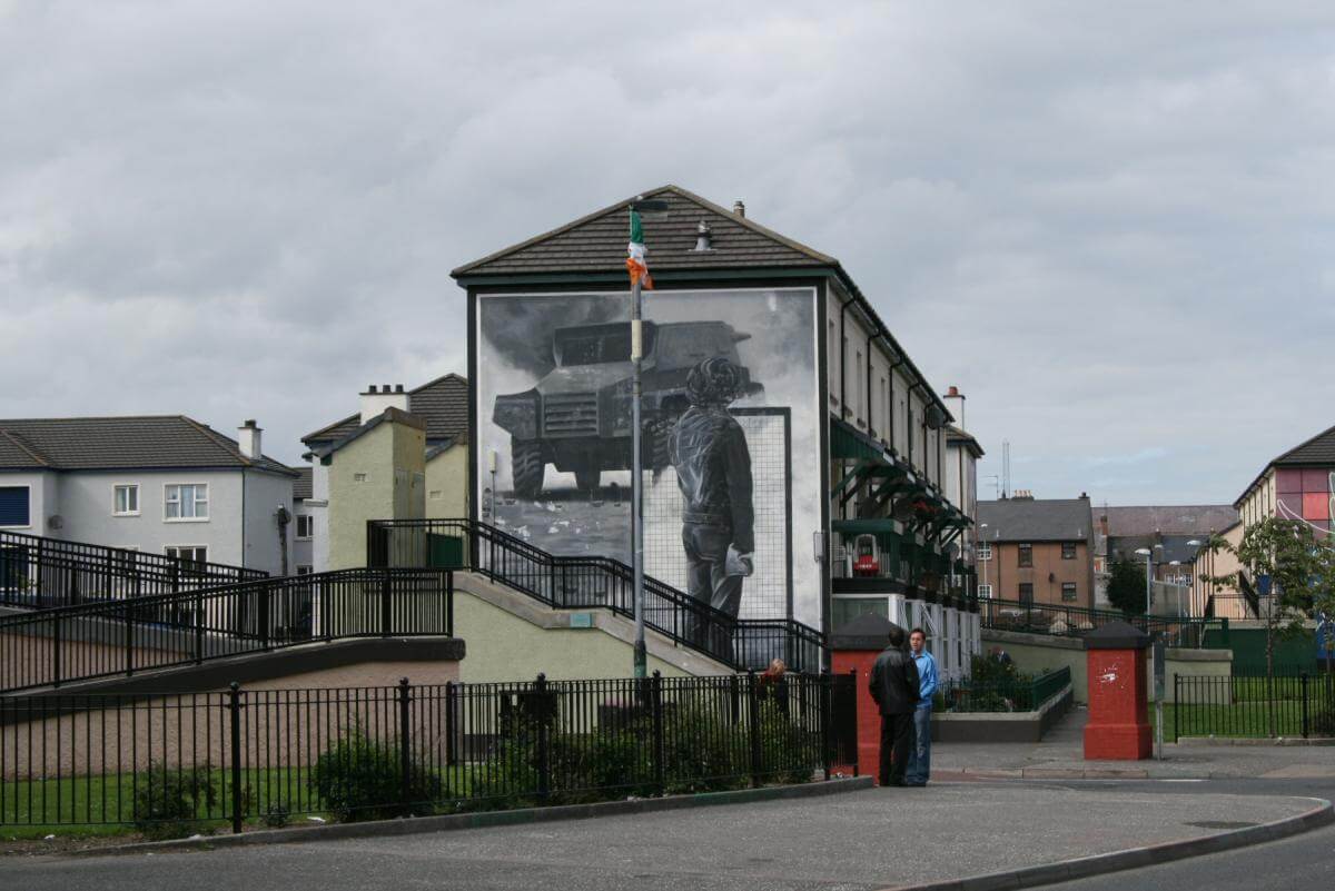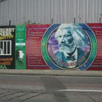 Hearing stories daily of past violence, exploitation, and injustice affected us, as our conversations dwelled on sites of continuing hurt. Giant murals on the sides of two and three story buildings in the Bogside in Derry portrayed scenes of British troops terrorizing the neighborhood, hunger strikers wasting away, and violent protests. We toured a Catholic neighborhood in Belfast, led by an Irish Republican Army member who had been imprisoned and brutalized, and as we walked through the streets of the neighborhood he pointed out landmarks of terror that continued to remind people of the awful past. Belfast remains divided into separate religious areas by the river and a barbed wire "peace line."