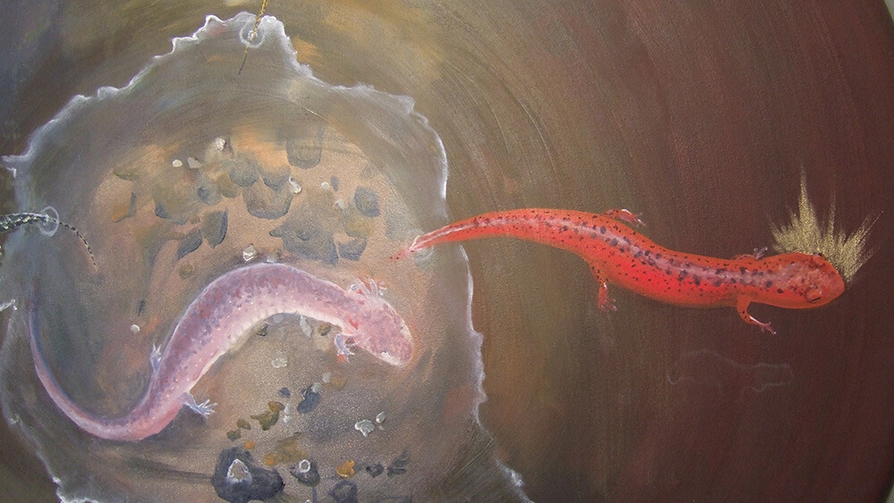 In this sampling from ORIGIN, a collaborative exhibition celebrating the 150th anniversary of On the Origin of Species and the 200th anniversary of Charles Darwin's birth, artist Nancy Lowe approaches the idea of "single centers of creation" through the example of salamander diversity in the Southern Appalachian mountains.