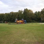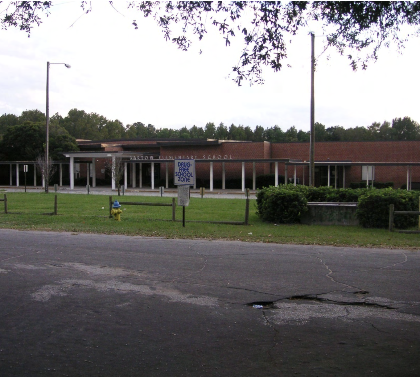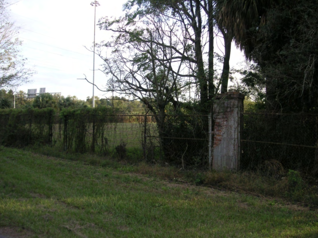 After the archival discoveries at GHS in Savannah, I visited the site of the former racecourse and found it mostly erased and hidden. Bifurcated by highway I-516, half the site is behind walls and a chain-link fence—currently part of a lumber yard owned by The Bradley Plywood Corporation.63Site ownership ascertained from a personal conversation with Tosca Owens, Planner, City of Savannah, November 2007. Owens is the planner who worked behind the scenes to ensure that redevelopment plans for West Savannah would not any longer disregard or be silent about the slave sale at the Ten Broeck Race Course. Across I-516, the other half of the race course site is now part of Bartow Elementary School. The trees shown are very likely growing in the infield of the former race course. At the southeast corner of the former Ten Broeck Race Course site is a paved section of Abbot Street, from which one can see the Central of Georgia railroad tracks.