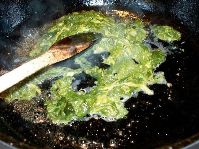 There’s no fool like a southern fool waxing nostalgic for her dead granny’s weird cooking, so of course I had to give this a try. Mee-Ma had to have eaten enough poke sallet in her life to kill her several times over, and while she may have suffered from prostration a time or two (mostly due to orneriness), she lived for a long time and died because she was very old. So inspired by her memory and fortified by her persistence, I set about recreating her recipe, which I had not tasted since I was about thirteen.