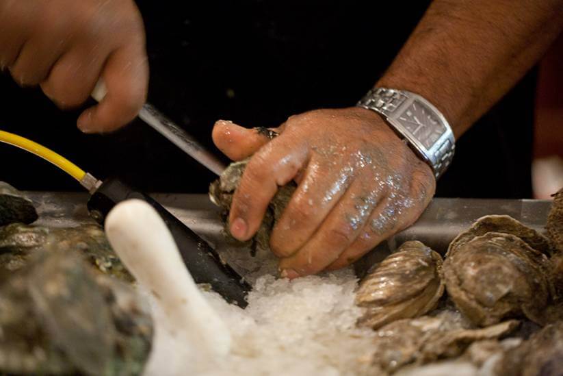 | Kelly Yandell, Foodways Texas oyster tasting at Gaido's Restaurant, Galveston, Texas, 2011. |