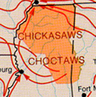 | Map of Main Indian Removal Routes from James W. Clay, Paul D. Escott, Land of the South (Birmingham, AL: Oxmoor House, 1989). |