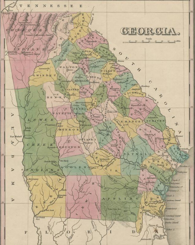 | Anthony Finley, Map of Georgia, 1824, from The New General Atlas, Birmingham Public Library Cartography Collection, digitized by the University of Alabama. |
