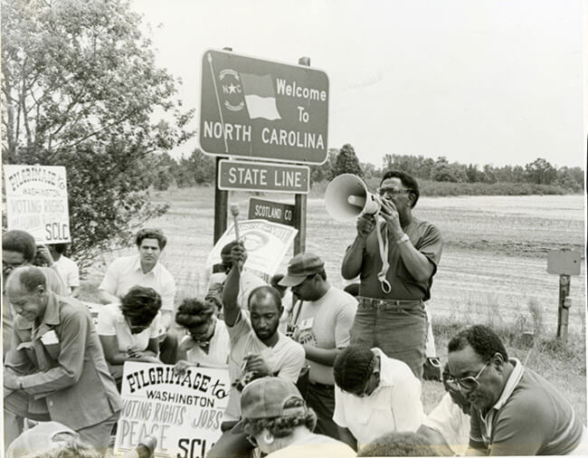 | Elaine Tomlin, Joseph Lowery leading a prayer during the 1982 Pilgrimage to Washington for Voting Rights, Peace, Economic Justice, North Carolina, 1982. Courtesy of SCLC records, MARBL, Emory University. |