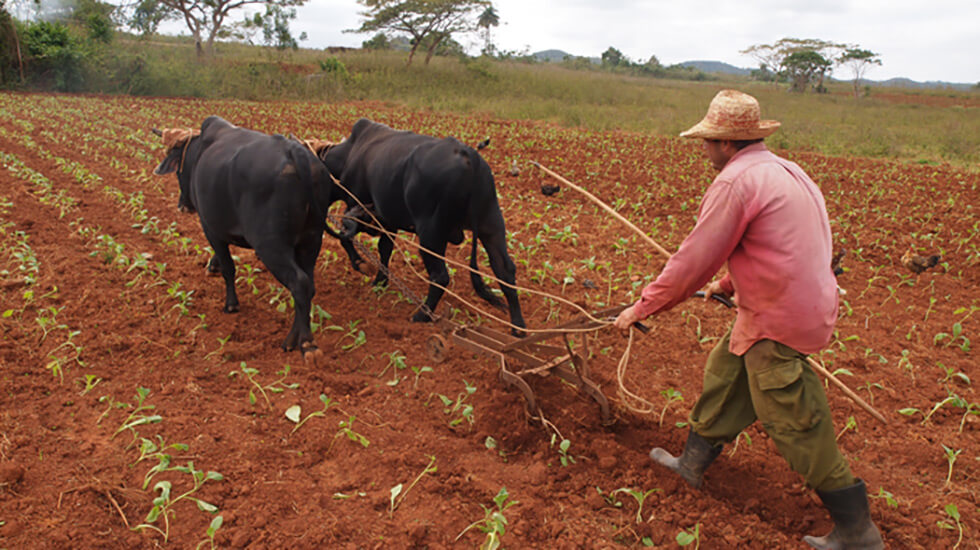 Viñales is known for its forested hills called mogotes, its caves, and its family-run farms, most of them growing tobacco, beans, rice, corn, and other crops, and many plowed by oxen. While this Cuban valley may be a paradise of sorts, humans here are much more than spectators. Viñales farms are no accidental Edens. They display the results of generations of sacrifice and invention, of work with machete and plow. Idyllic portrayals of the natural beauty of Cuba often ignore people and their agency, relegating farmers to insignificance and citizens to passivity. People help shape the scenery, and their innovations help them manage their environments.