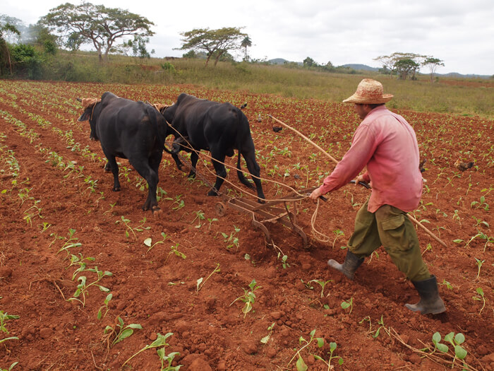 Viñales is known for its forested hills called mogotes, its caves, and its family-run farms, most of them growing tobacco, beans, rice, corn, and other crops, and many plowed by oxen. While this Cuban valley may be a paradise of sorts, humans here are much more than spectators. Viñales farms are no accidental Edens. They display the results of generations of sacrifice and invention, of work with machete and plow. Idyllic portrayals of the natural beauty of Cuba often ignore people and their agency, relegating farmers to insignificance and citizens to passivity. People help shape the scenery, and their innovations help them manage their environments.