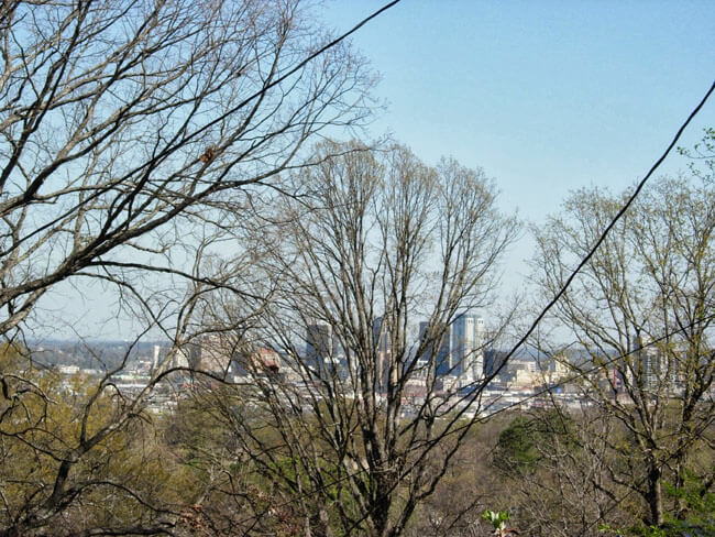 | Birmingham skyline through the white oaks. Birmingham, Alabama, March 21, 2008. Photograph by Jon Smith. |