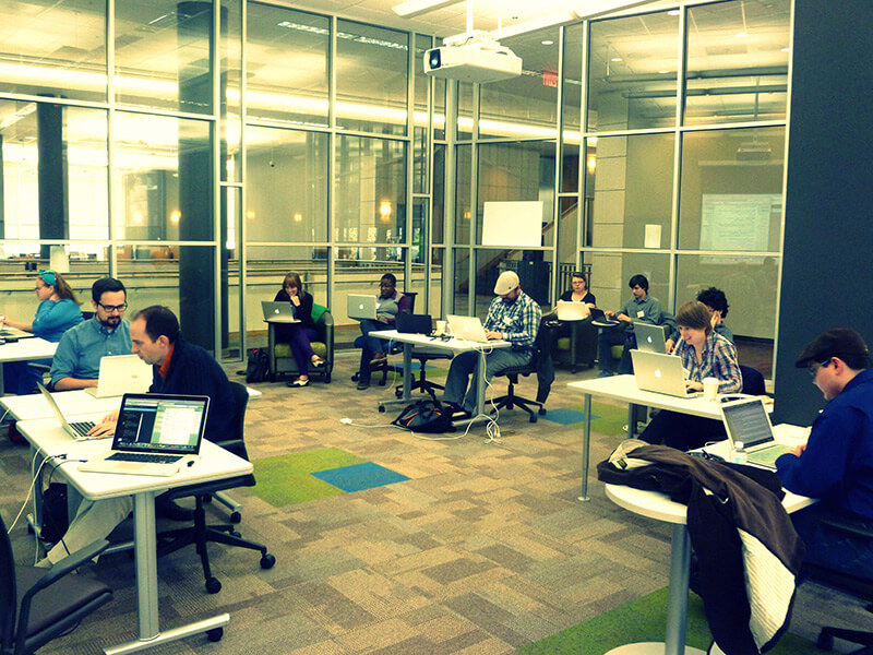 Sarita Alami, THATCamp Feminisms South participants edit wikipedia pages for TooFEW, Emory University, Atlanta, Georgia, March 15, 2013.