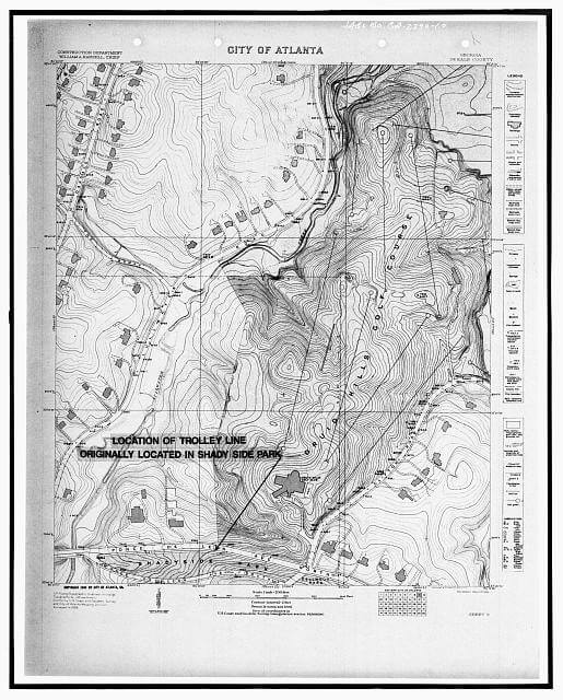 Sam Fowler, 1930 City of Atlanta quadrangle map, Druid Hills historic district, US 29, Atlanta,Georgia, 1987. Library of Congress, Historic American Buildings Survey HABS GA-2390-10.