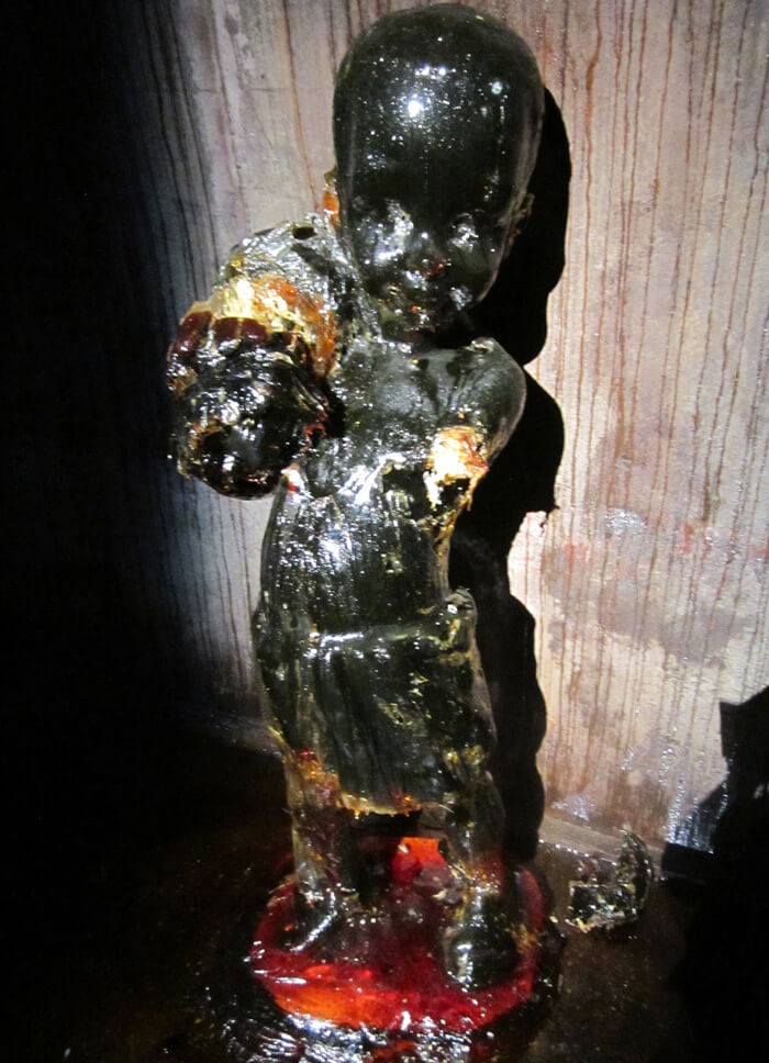 At first, we smell the scent of sugar familiar as confectioned sweets and candy. One visitor puts her nose to one of the figures. "At least it smells good," she says. But it only takes a few minutes to whiff the acrid stench of old sugar, a smell like that of meat or flesh rotting in the trashcan in the back of a restaurant on a hot afternoon. The sweet rancid air mixes with urine and corroding iron. Suddenly, we're lost characters in a Grimm tale.