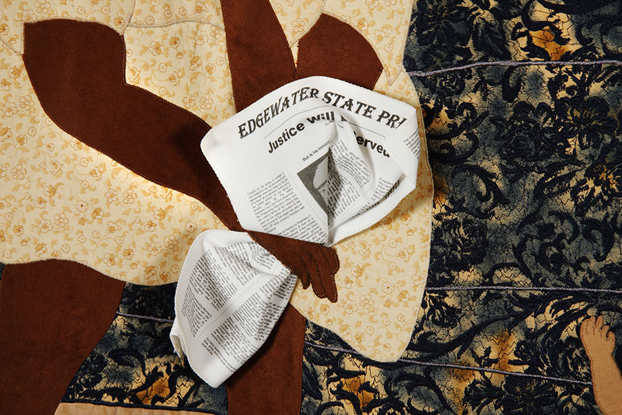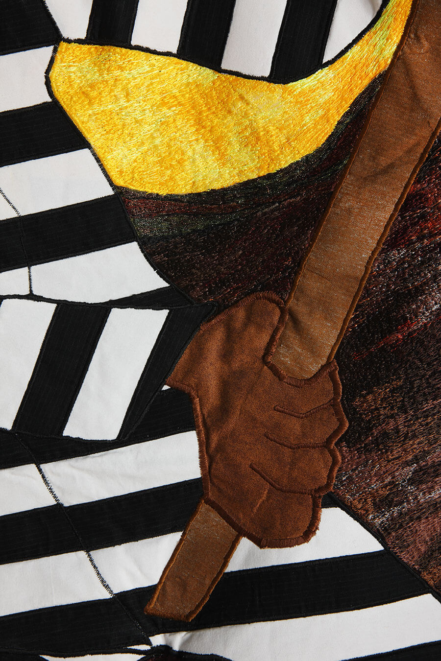 | Expendable Cargo, 2010. © Gwendolyn A. Magee. Pieced, quilted, and appliquéd cotton, with cording. 82"x18". Collection of Mississippi Museum of Art, Jackson. Purchase, with funds from McCravey Fund, 2013.014. Photograph © 2014 Gil Ford Photography. Detail photograph by Dave Dawson Photography. | |