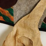 The names of the lynched, recorded by state, and localized within each state, brings the horrific history home. This is a memorial piece, a Vietnam Wall in cloth. With the spiraling tree in translucent overlay, fading body, and stark black and white palette, every element of this piece is stark and compelling.
