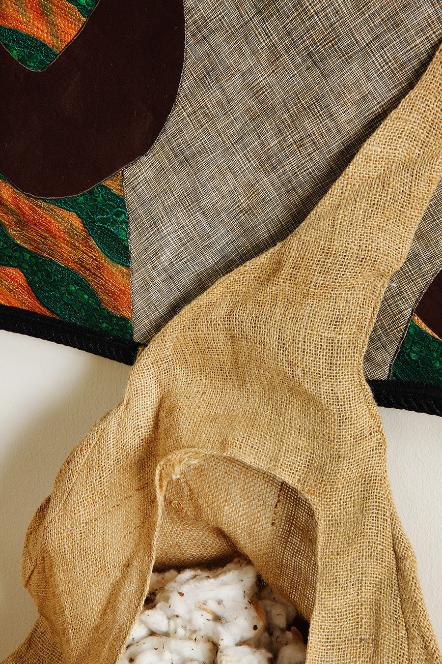 | Southern Heritage/Southern Shame, 2001. © Gwendolyn A. Magee. Pieced, quilted, and appliquéd fabrics, with cording. 22.5"x32.5". Collection of Michigan State University Museum, East Lansing, Michigan. Purchased with funding from the MSU Office of Research and Graduate Studies and the MSU Foundation. Photography © 2014 Roland L. Freeman. |