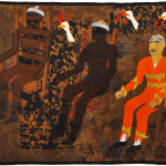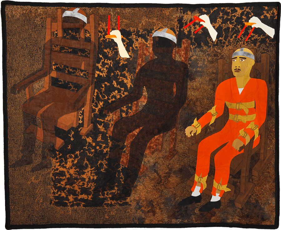 This multilayered quilt, with its narrative elements and use of transparencies to create layers of meaning, is now in the collection of the Michigan State University Museum. The Confederate battle flag is overlaid with silhouettes of lynched bodies, but the left side of the work is deceiving—at first glance viewers may try to blink away a fog or a smudge. But suddenly, through Magee's skilled use of materials, a figure emerges and the shadowy, hooded figure leaps into view.