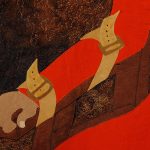 | The Blood of the Slaughtered II, 2001. © Gwendolyn A. Magee, Pieced, quilted, stitched, and appliquéd fabrics, with cording. 70"x18". Collection of the Gwendolyn Ann Magee Estate, D. E. Magee. |