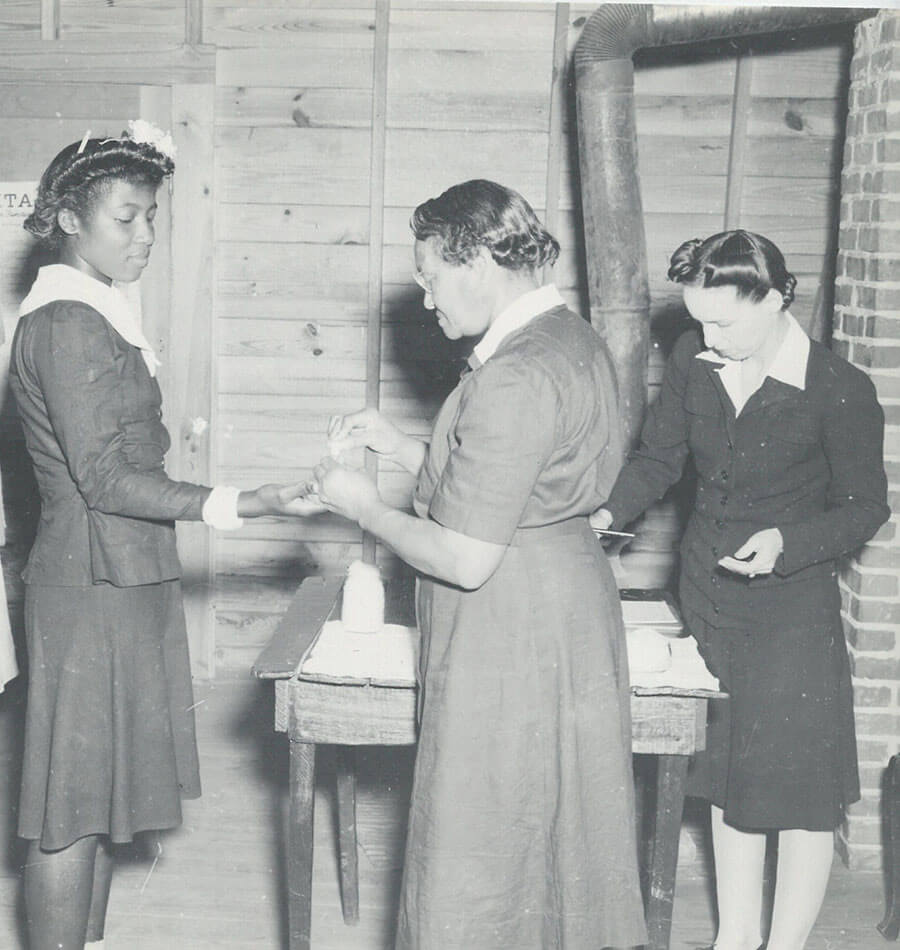| Women receive health services, Emory University Field Station on Ichauway Plantation, ca. 1938–1945, Baker County, Georgia. Photograph by United States Public Health Services Office of Malaria Control in War Areas, Melvin H. Goodwin papers, Manuscript, Archives, and Rare Book Library, Emory University. |