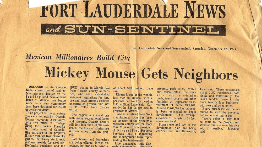 | "Mickey Mouse Gets Neighbors," Fort Lauderdale News and Sun-Sentinel, November 23, 1974. |