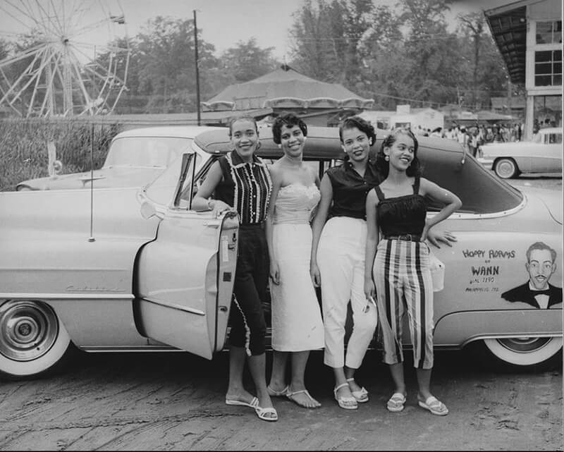 | Four young African American women standing before a convertible automobile, Carr's Beach, Maryland, ca. 1958. Used with permission from WANN Radio Station Records, Archives Center, National Museum of American History, Smithsonian Institution, AC0800-0000005. |