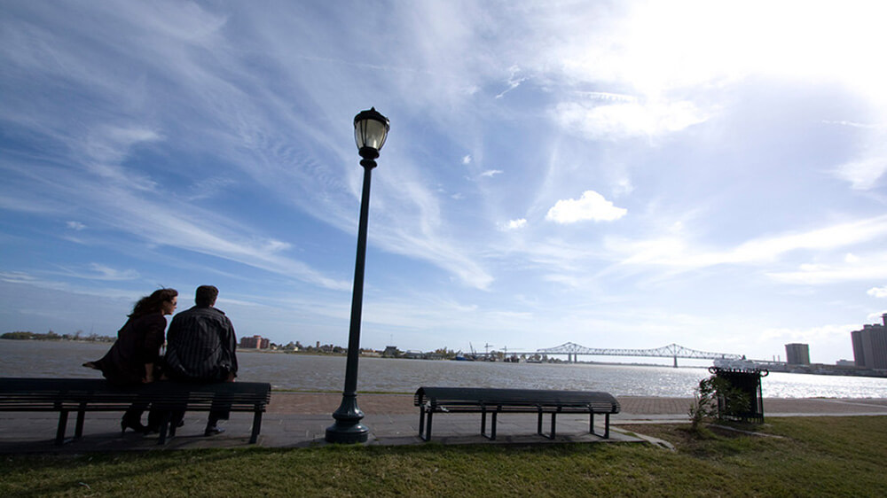 | Mississippi River Moonwalk, New Orleans, Louisiana, 2011. Photograph by Derek Bridges. Courtesy of Derek Bridges. |