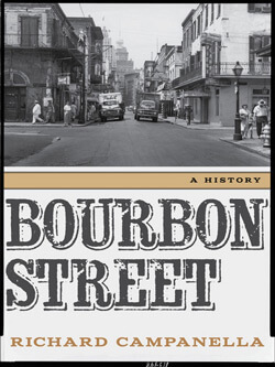 A prolific, award-winning author and commentator on New Orleans's historical geography, Campanella has made a career of heralding the significance of the city's cultural and historic neighborhoods. In Bourbon Street, he turns his attention to the city's most iconic thoroughfare and its development from "pedestrian, unpretentious, and utterly unexceptional" (21) origins as Rue Bourbon in the eighteenth century to its present-day renown as "a signature street, one that [speaks] on behalf of the whole city to the nation and the world" (222). The book is divided into three parts: "Origins," "Fame and Infamy," and "Bourbon Street as a Social Artifact."