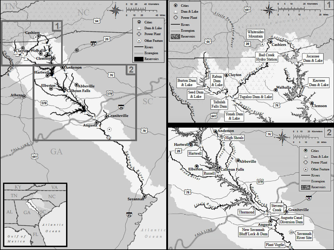 Manganiello also could do more to delimit the regional scope of his conclusions in Southern Water, Southern Power. He refers to the South and the southeastern United States throughout, but provides no explicit definition of either, coming closest when observing that reservoirs "dot the landscape from Mississippi east to Georgia and north through the Carolinas" (10). His analysis is strongest when discussing riverine development in the piedmont of Georgia and the Carolinas and in particular the similarities between Duke Power's efforts on the Catawba River and Georgia Power's projects on the Savannah. As a study of this smaller geographic region, Southern Water, Southern Power is excellent. While Manganiello's premise that the Savannah can be used to "tell multiple river stories in a single Piedmont space" (12) seems reasonable, his faith in readers to divine the bounds of his study through his use of "South" and "Southeast" as descriptors is misplaced.