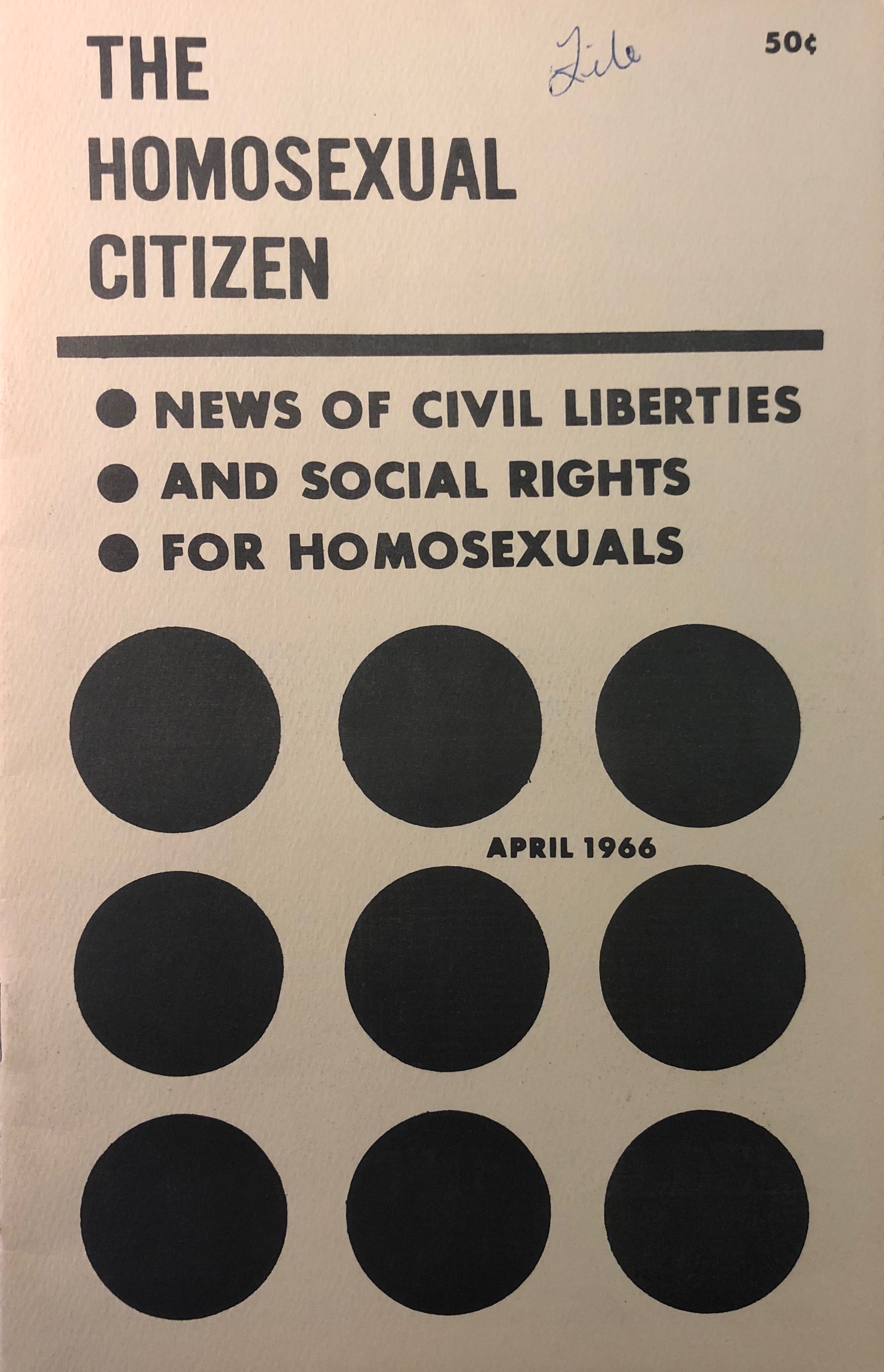 | 13. | Foster Gunnison, Jr., "The Agony of the Mask," The Homosexual Citizen 1, no. 4 (April 1966), Don Kelly Collection in Gay Literature and Culture, Cushing Memorial Library, Texas A&M University. |