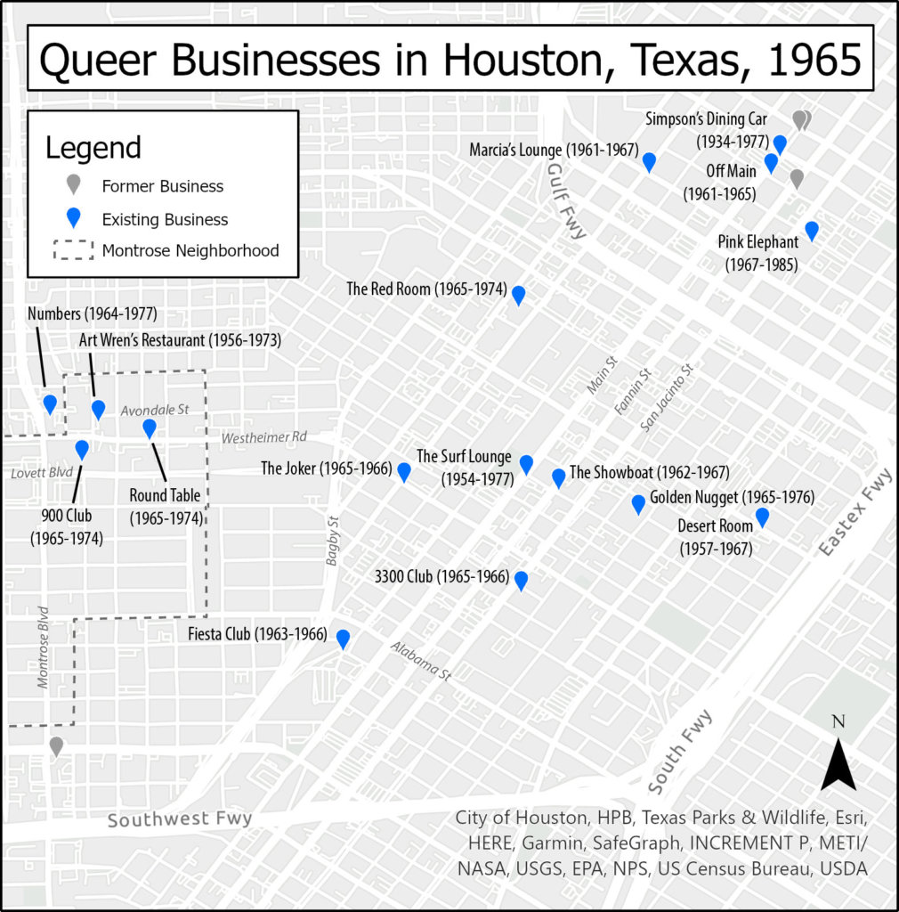 | 27. | Sadly, Houston city directories from the 1930s and 1940s did not confirm the addresses and locations for the bars documented in this article, so they are not included on the map. It is tempting to assume they fall within the sixteen-block area described by Van Allen. |