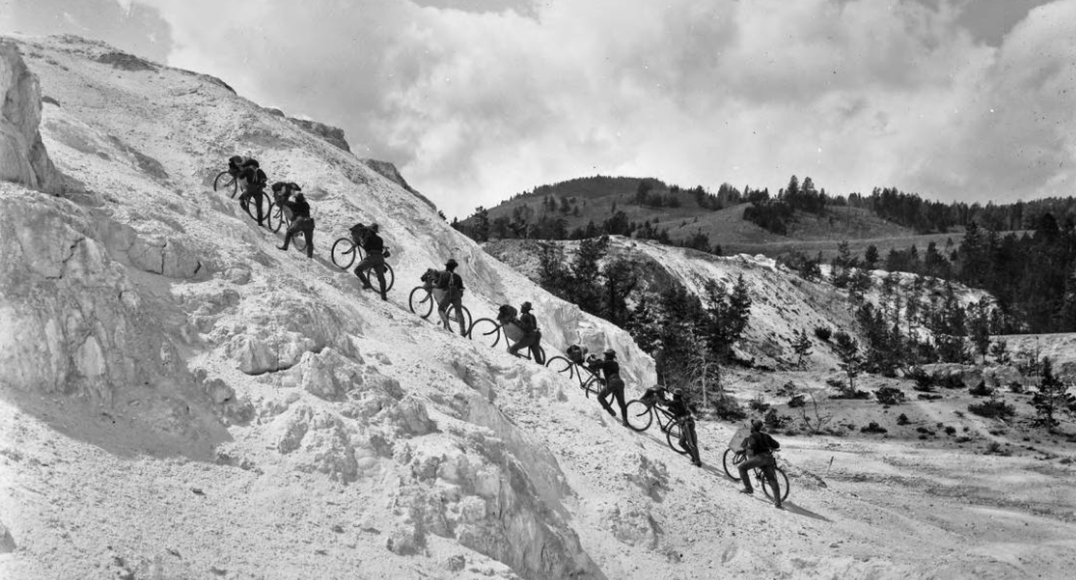 African American soldiers pushing their bicycles up the side of Minerva Terrace at Mammoth Hot Springs in Yellowstone National Park, Montana, October 7, 1896. Photograph by F. Jay Haynes. Courtesy of the Montana Historical Society Research Center and Montana Memory Project.Recommended Resources