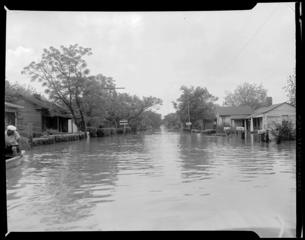 Though Princeville may look like other rural towns in eastern North Carolina, it carries significant histories. Shiloh Landing marks the point along the Tar River where enslaved peopled disembarked into brutal lives of forced labor and captivity. Another riverfront site was later accessed by congregants of local churches, arriving in white-robed processions to perform baptismal ceremonies. Princeville, from its infrastructure to its buildings and landscapes, was self-built by Black residents. Many residents were engaged in the timber and mill industries and located their businesses and homes close to the Tar River, built on stilts to help them survive frequent flooding. Powell Park now marks this area and its emotionally charged history—five major floods inundated the town in the twentieth century. Hurricane Matthew ravaged the town in 2016. Princeville's endurance to rebuild in the face of these devastations has made it especially remarkable.