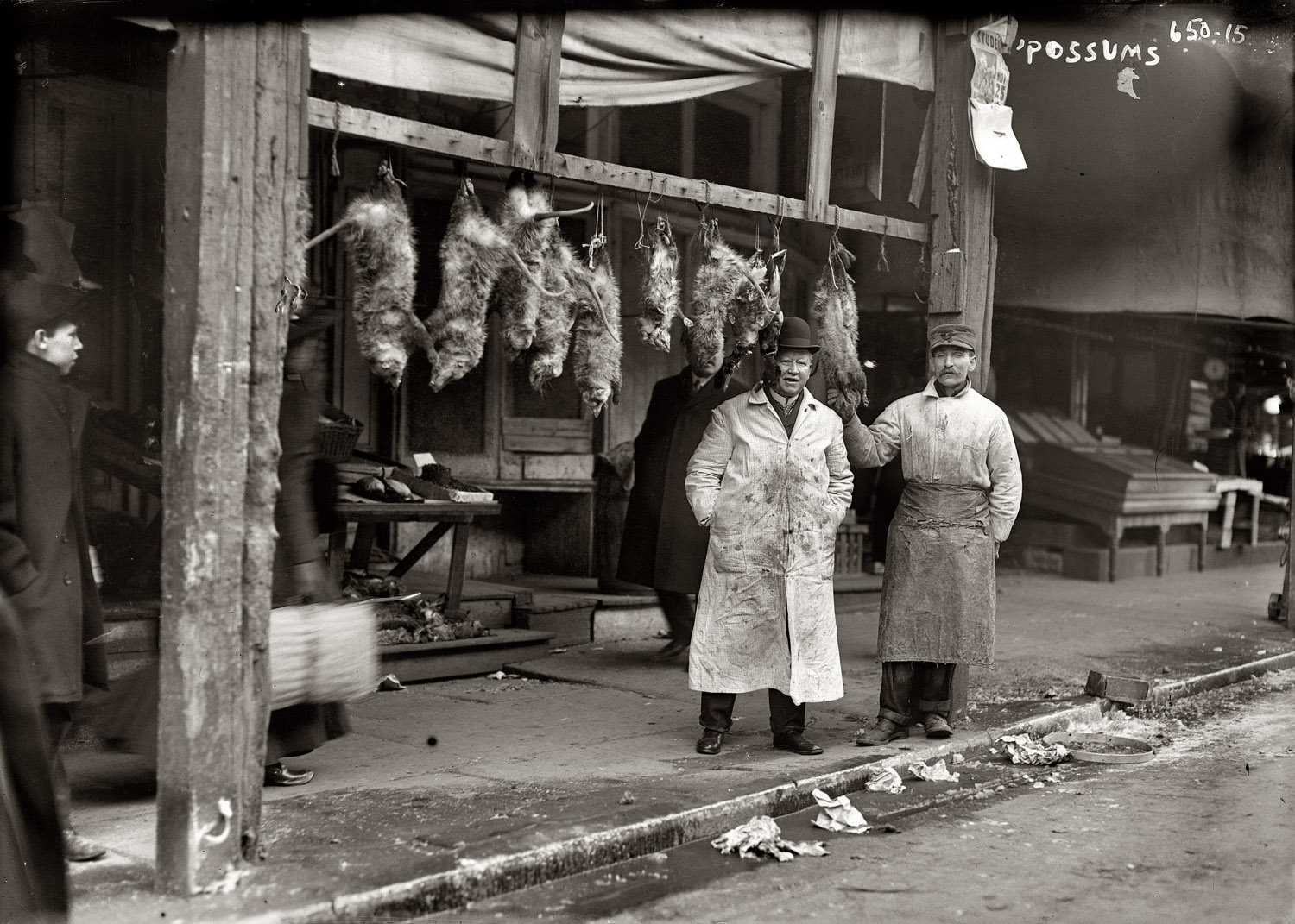 The large influx of rural whites and freed people into southern cities fueled the growth of urban game markets throughout the late nineteenth and early twentieth centuries. In 1888, the marsupial had "arisen to a very important place in the commercial world" with one Atlanta commissioner handling three hundred of them a month and reportedly earning about $500.47"'Possum and 'Tater. Georgia Gourmets Now Reveling in the Chief Delight of the Year," reprinted from the Atlanta (GA) Journal in the Sun (New York, NY), Oct. 28, 1888, 5, https://chroniclingamerica.loc.gov/lccn/sn83030272/1888-10-28/ed-1/seq-5/. This "country animal has been a part of the south as long as there has been any south," the author asserted. The next year wholesale grocer J.C. McMillan & Co., located on Marietta Street in Atlanta, had begun keeping 160 opossums in a room, where they were "fed on slops just like a pig" for two weeks before being butchered for the table.48"A Horde of 'Possums. The Animals are Kept in a Room on Marietta Street," The Morning News (Savannah, GA), Dec. 11, 1888, 6, https://gahistoricnewspapers.galileo.usg.edu/lccn/sn86063034/1888-12-11/ed-1/seq-6/. While purifying the digestive tracts of these omnivorous animals helped make their meat more suitable for city consumers, so did the removal of grease and fat through distinct roasting techniques.49Richard Malcolm Johnston's government report indicates some of these class differences. In it, he wrote, "Southerners regard it of all meats the least indigestible, and but for its superabundant fat it would appear more frequently on tables of the whites. In some houses this superfluity was disposed of by placing a layer or more of oak or hickory sticks to the height of 3 or 4 inches at the bottom of the oven, and upon the latticework thus made laying the opossum. By such mode much of the oil was deposited on the bottom. The negro, when cooking for himself, never resorts to these measures, but takes his favorite as he is, indeed preferring him with all his imperfections on his head." Richard Malcolm Johnston, "Opossum Hunting Before the War: From the reports of the Bureau of Education," reprinted in Game Laws in Brief and Woodcraft Magazine 1, no. 1 (New York: Forest and Stream Publishing Company, April 1899), 111, https://babel.hathitrust.org/cgi/pt?id=nyp.33433082123633&view=1up&seq=127&skin=2021.