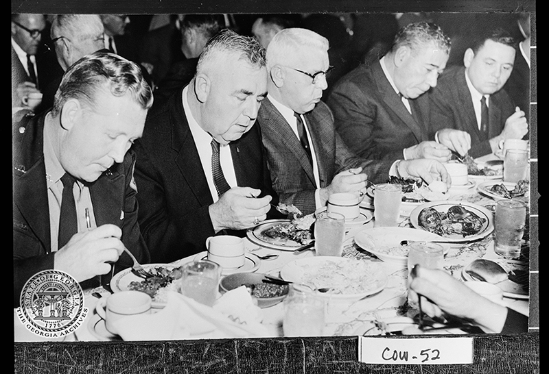 The complexity and behind-the-scenes maneuvering of numerous political factions during this period cast a cloud over why conservative Democrat Allen D. Candler (1898–1902) or Progressive Hoke Smith (1907–1909, 1911) were not considered part of the conspiracy, although it may relate to their efforts to restrict the power of the state railroad commission.85Cook, "Allen Daniel Candler 1898–1902," "Hoke Smith 1907–1909, 1911," Joseph Mackey Brown 1909–1911, 1912–1913," The Governors of Georgia, 185–188; 192–195. For more on Candler claiming to not be part of the "'possum regime" see "Candler on 'Possum Supper," Americus (GA) Times-Recorder, Jan. 14, 1898, 3, https://gahistoricnewspapers.galileo.usg.edu/lccn/sn89053207/1898-01-14/ed-1/seq-3/. Editor Graves offers some insight that Georgia's "'possum regime' was in large measure a railroad regime, and that under it corporations expect the fullness and the fatness which distinguished the adipose of the Georgia 'possum."86Graves, "The 'Possum Governors' of Georgia," https://gahistoricnewspapers.galileo.usg.edu/lccn/sn89053456/1909-01-15/ed-1/seq-1/. Accordingly, capital interests played an important role in the "booming" of certain politicians over others at events such as the Newnan opossum suppers. Barton Shaw explains the monetary benefits gained by those whom legislators appointed: "Solicitors were partly paid in fees, and citizens who could pay the highest price often found the state's charges against them dropped or at least reduced. Judges not only received handsome salaries, but were in excellent positions for advancement. The convict leaseholders always smiled upon those who helped keep up the supply of prisoners. With such support, many judges soon found themselves holding seats in Congress."87Shaw, The Wool-Hat Boys, 125.