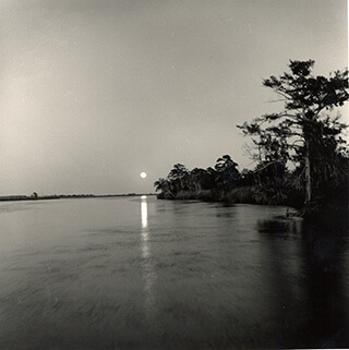 Dimmitt: I'll almost give you a straightforward answer and say yes. And then there's a but. As I mentioned, I started shooting there in earnest in 2004, and I was just photographing something that I thought might disappear or that I just liked an awful lot. And the more I poked around, the more time I took when I went there and paddled in the various parts of the swamp, the more I loved it. And again, I'm from there. This is my native landscape, so I was very happy to be doing what I was doing. And then climate change arrived, and I didn't really change my approach and become a different sort of photographer. I just photographed the impact. There was nothing undamaged. The impact was all encompassing. It was everywhere. You really couldn't escape it, and it got worse every time I went. Someone recently asked me how how many rolls did you shoot? How many times did you go down there? I moved to Asheville in 2014, and that's when I first discovered that the rising seas were starting to do serious damage. The tally I got when asked was around twenty-five trips down there in the eight years that I worked on the project.